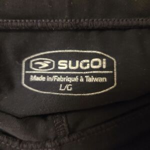 Black Sugoi pants with inner drawstring. Fabric content tag removed but they are lightweight, soft and stretchy. They are a more washed black color.