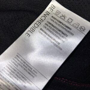 Washable polyester body with polyester spandex, blend trim, full zip jacket with zip pocket at left hip and 3 back elastic pockets on lower back. Excellent condition. Size small, measures 17” from armpit to armpit and 22” from top of shoulder to bottom hem. Last two pictures are shown with the flash on to show the reflective properties of the jacket.