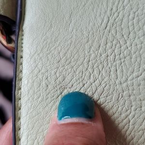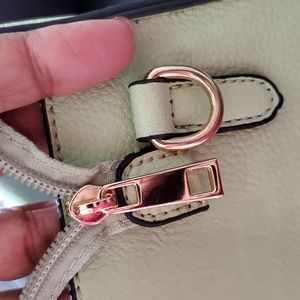 EUC The handbag is 11” high, 13” wide. Zip closure. Open interior with 2 pockets, one zippered. Comes with a strap for keys. Exterior back pocket with zipper.