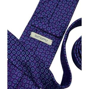 SUITSUPPLY Men's 100% Silk Necktie LUXURY Tie Purple Blue Geometric W:3.1" EUC