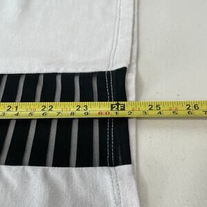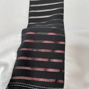 Details: This oversize top features short dolman sleeves, V-neckline and sheer black insert down front of top.
