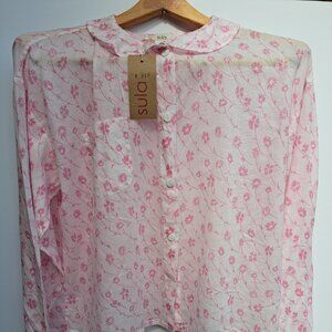 SULA Blouse Floral Round Collar Print - Fuscia Med