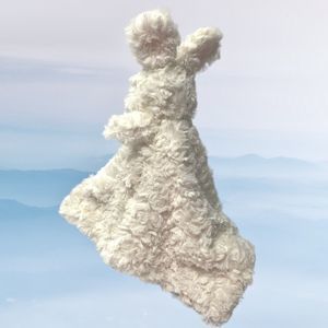 Creamy Whgite BUNNY Baby Lovey Security Blanket Rosette Curly Plush.