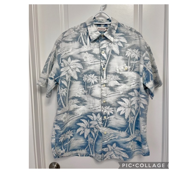 Summa Men’s SS Hawaiian Shirt - Blue. Front Button Close Pocket. Ombre Effect.