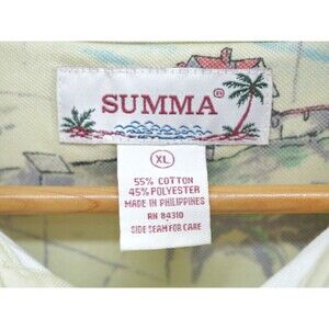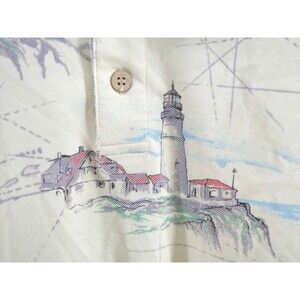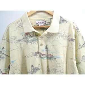 SUMMA Polo Shirt Mens Light House Prints Casual Work Short Sleeve Hawaiian‎ XL