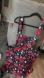 Charming overall dress with heart pattern. Features bold red and white hearts on a black background. Perfect for a playful look.