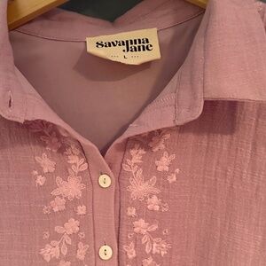 GENTLY WORN, COMFORTABLE, LAVENDER GAUZE DRESS WITH EMBROIDERY. BOHO CHIC.