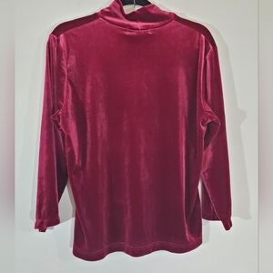Elegant velvet long sleeve top in a rich red hue. Perfect for adding a touch of sophistication to any outfit.