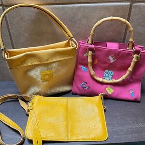 SUMMER Lot of 3 handbags bundle, Yellow & Pink Tianna, Liz Claiborne, Crossbody