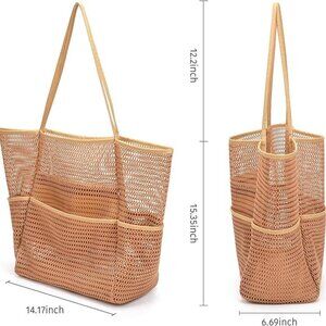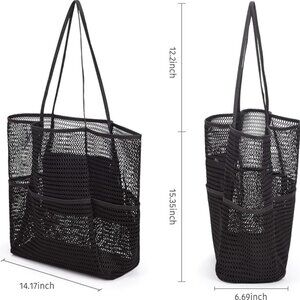 Fashionable Mesh Beach Bag: Our large beach bag is designed for a stylish day at the beach or pool, with dimensions of 14.17"" L x 6.69"" W x 15.36"" H to fit sunscreen, swimsuits, towels, shoes, sunglasses, and more.