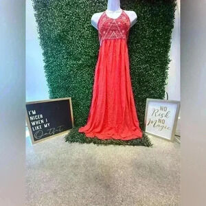 Great Pre-loved condition!! Summer orange halter maxi dress with ruched embellished details size U