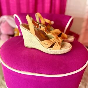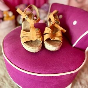 SUMMER SALE Born Orange Faux Leather Strappy Espadrille Wedges Women’s Size 7