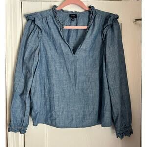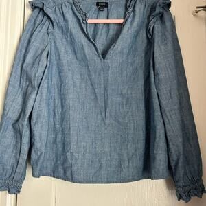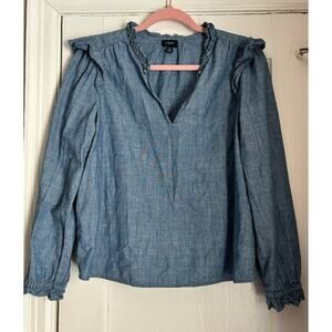 J.Crew Chambray Ruffle Long Sleeve Blouse – Size Small