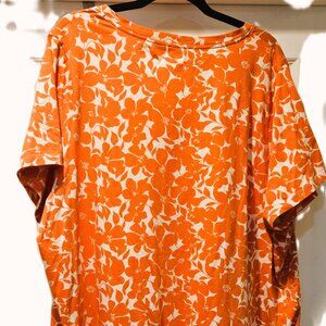SUMMER SALE! Land's End 3X orange/white tropical short sleeve V-neck shirt
