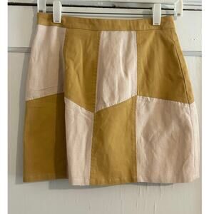 Chic and bold, this Lost + Wander mini skirt in size Small features a modern patchwork-style colorblock design in mustard yellow and soft cream tones. The structured yet lightweight fabric offers a flattering fit with just enough edge. Perfect for pairing with a tucked-in tee or cropped blouse for an effortlessly stylish look. New without tags and in excellent condition—never worn!
