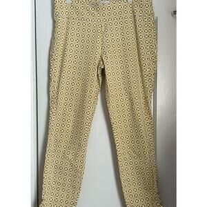New York & Company Yellow Geometric Print Slim Pants Size Medium | Stretch Ankle Trousers