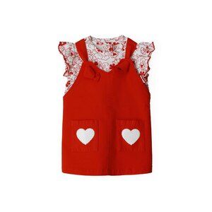 💥 SUMMER SALE - RED FLOWER FUN SEQUIN HEARTS OVERALL DRESS - BABY GIRL OVERALLS