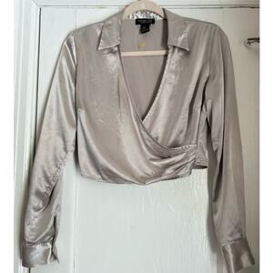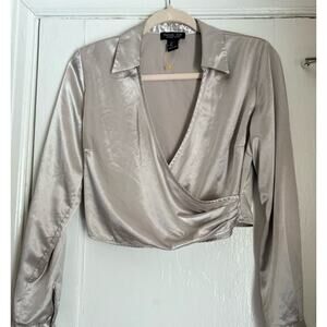 SUMMER SALE | Rachel Zoe Champagne Satin Surplice Blouse - Size Small