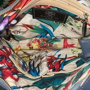 Embossed blue leather with rose & crocodile designs. πΉπ This bag has a rocker vibe and is so cute!