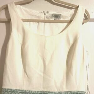 SUMMER SALE | Tahari White Dress w/ Green Pattern Hem– Women’s Size 8