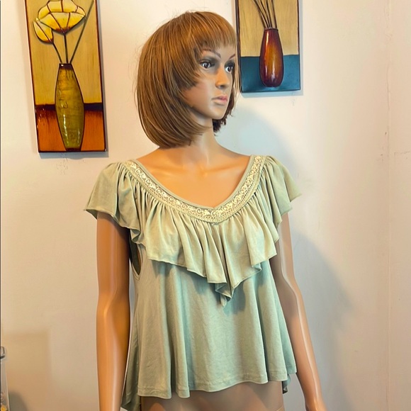 Pretty off the shoulder or on the shoulder look. Very comfortable. No stains or issues whatsoever I actually never even wore this !🤗