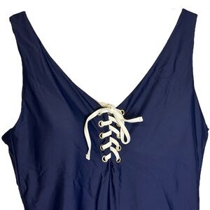 SUMMERSALT The Lace-Up Backflip Navy Blue NWT Size 16. Brand new with tags. Super smooth fabric. Approximate measurements 30” shoulder to bottom and 18” width at bust. White lace up design on blue.