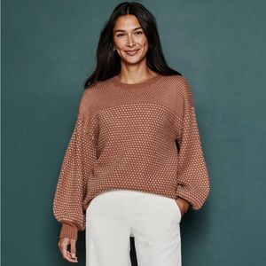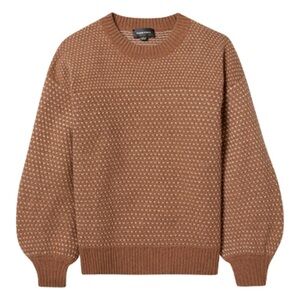 Warmth with a bit of whimsy. Knit from our most luxurious cashmere blend yet, this pullover sweater features a relaxed fit, dramatic balloon sleeves, & mix-stitch design.