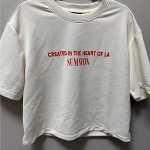 SUMWON Graphic Short Sleeve Sweatshirt Created in the Heart of LA Cream Red