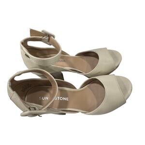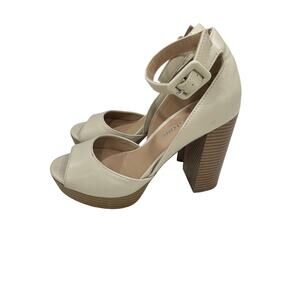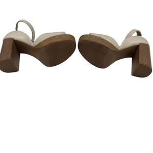 PRE-OWNED IN GOOD CONDITION WITH MINOR DAMAGE ON INSIDE OF FRONT SHOE, BEAUTIFUL CREAM COLOR SIZE 5