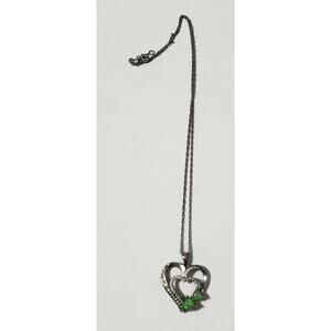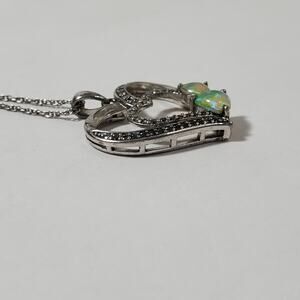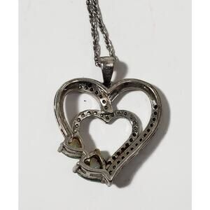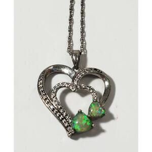 Signed SUN BR faux opal and cubic zirconia heart shaped rhodium plated pendant necklace.