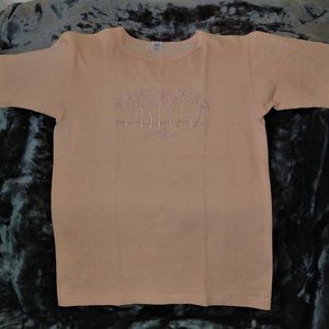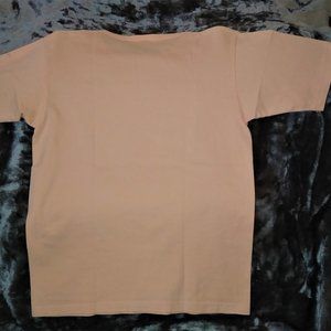 This shirt is used but it is in very good condition, it has no stains or tears, it is short-sleeved and has a round neckline.
