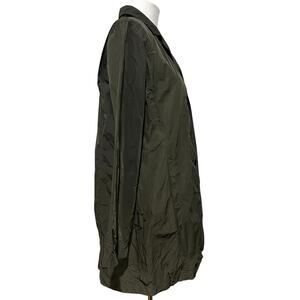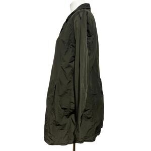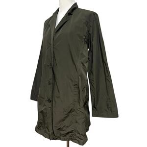 SUN KIM Boyfriend Jacket Crinkle Texture Collared Button Up Blazer Olive Sz L. Made in the USA. Preowned. Great condition. Comes from smoke free home. Ships out fast!