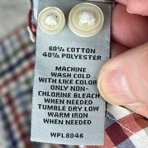 red, blue, green, white checked plaid color combo. 100% cotton. Super comfy & versatile staple piece 🍃 Great vtg condition! Size large.