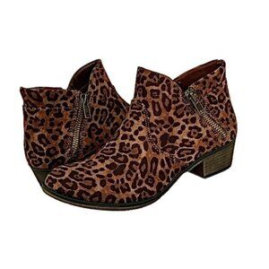 SUN STONE ABBY Women's Heel Boot Double Zip Booties Brown/Black Leopard Print