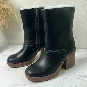 SUN STONE Black Cushioned Goring Denverr Square Toe Block Heel Zip-Up Booties Size 6M