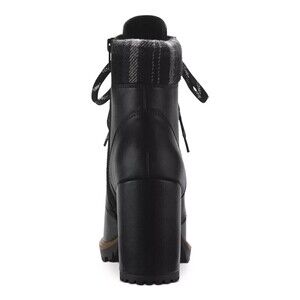SUN STONE Womens Black Lace Up Octavia Round Toe Block Heel Hiking Boots 10 M