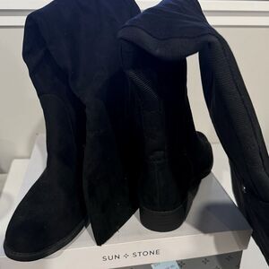 SUN STONE Womens Black Slip Resistant Allicce Round Toe Zip-Up Boots Shoes 7 WC