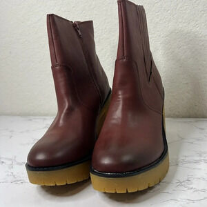 SUN STONE Womens Brown Lug Sole 1" Platform Lennii Round Toe Block Heel Booties