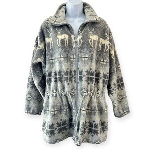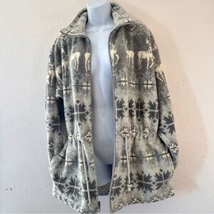SUNBUSTER Vintage 90s Fleece Deer Aztec All Over Print Zip Parka Jacket S/M