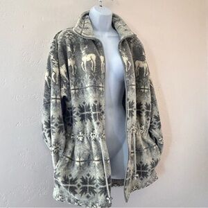 SUNBUSTER Vintage 90s Fleece Deer Aztec All Over Print Zip Parka Jacket