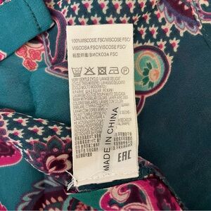 SUNCOO XL Paisley Ruffle Button Up Dress Blouse Green Pink Career Casual Office