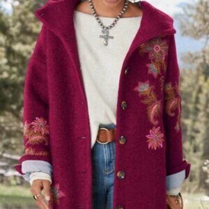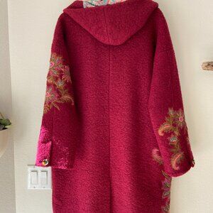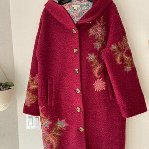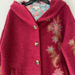 SUNDANCE BLOOMING BOUCLE EMBROIDERED WOOL BLEND HOODED COAT SZ S