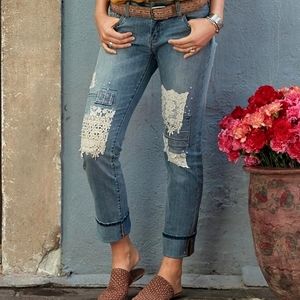 Sundance brand. Brand New with tags. Super cute boho lace patch jeans. Wear them straight or wear them cropped! View last image for more item details!