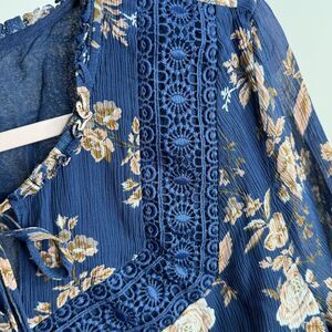 SUNDANCE Botanical Blouse Top Womens Sz L Silk Floral Crochet Lined
