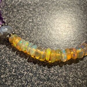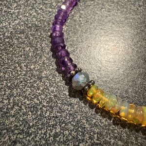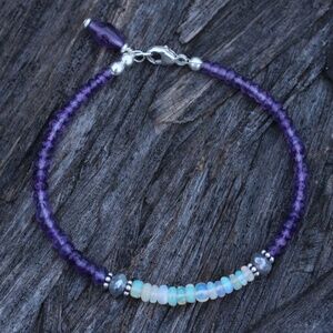 Up for sale this beautiful Bracelet exclusively by SUNDANCE CATALOG. The Bracelet features Purple Amethyst, Ethiopian Welo Opal and Labradorite spacers all connected with a Sterling Silver Clasp. It's even more beautiful in person.
