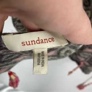 SUNDANCE CATALOG Floral Tassel Scarf 100% wool geometric gray pink orange