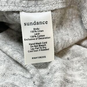SUNDANCE CATALOG Women’s Gray Linen Crochet Lace Detail JUSTINE Tee Sz Petite Small. Excellent pre-owned condition. Minimal signs of wear. No stains or holes. All measurements are approximate.