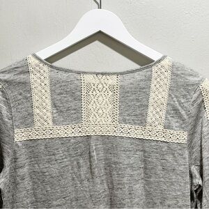 SUNDANCE CATALOG Women’s Gray Linen Crochet Lace Detail JUSTINE Tee Sz Petite S