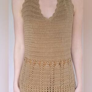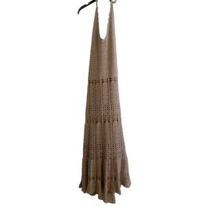 SUNDANCE Crochet Halter Backless Lined Maxi Dress M