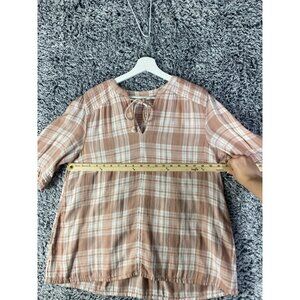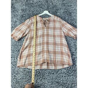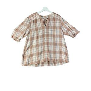 SUNDANCE Elsie Gauze Top SZ L Smocked Plaid Dust Rose Western Peasant Cottage